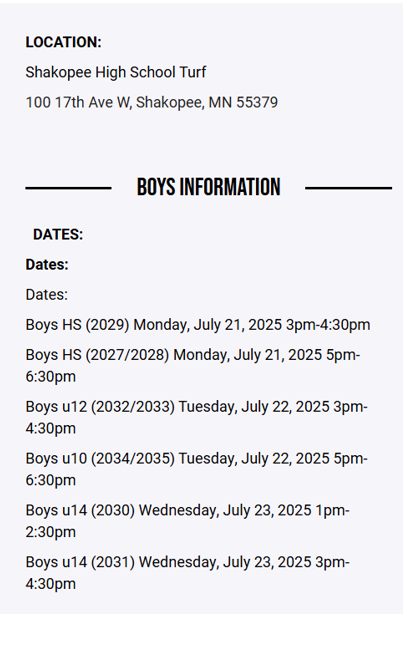 Boys and Girls tryouts for the 2025-2026 MN Chill seasons will be on Tuesday, August 5 & Wednesday, August 6, 2025. Locations/Times are listed below!